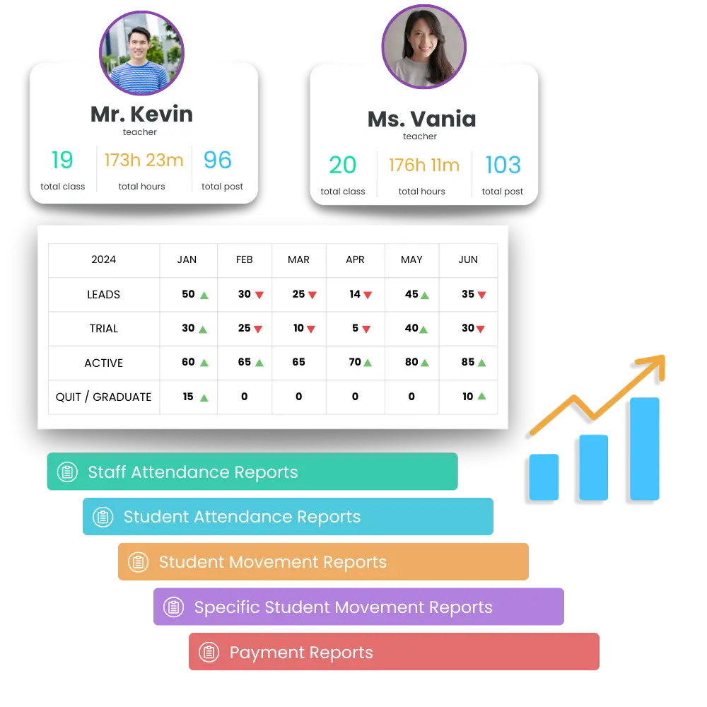 Sajikan laporan kehadiran untuk berbagai keperluan seperti performa murid dan pembayaran